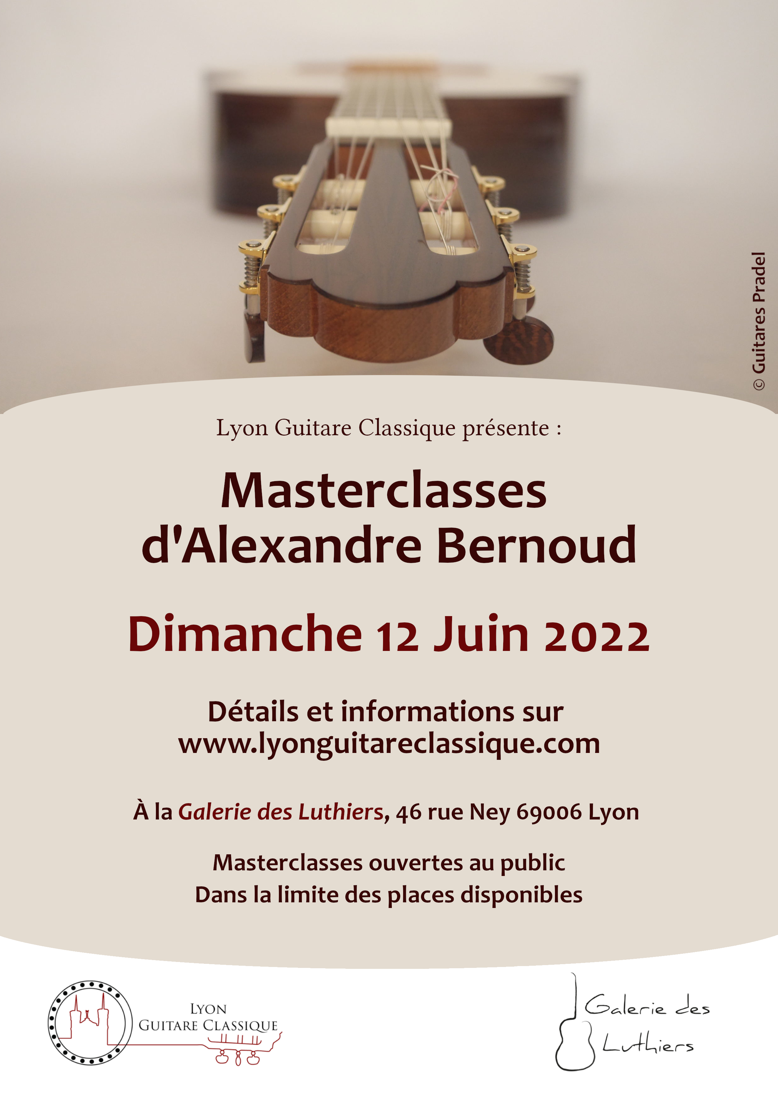 Lyon Guitare Classique organise des masterclasses d’Alexandre Bernoud le 12 juin 2022 en partenariat avec la Galerie des Luthiers.