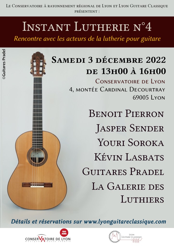 L’Instant Lutherie n°4 se déroulera de 13h à 16h le samedi 3 décembre 2022 au Conservatoire de Lyon (4, montée Cardinal Decourtray, 69005 Lyon).